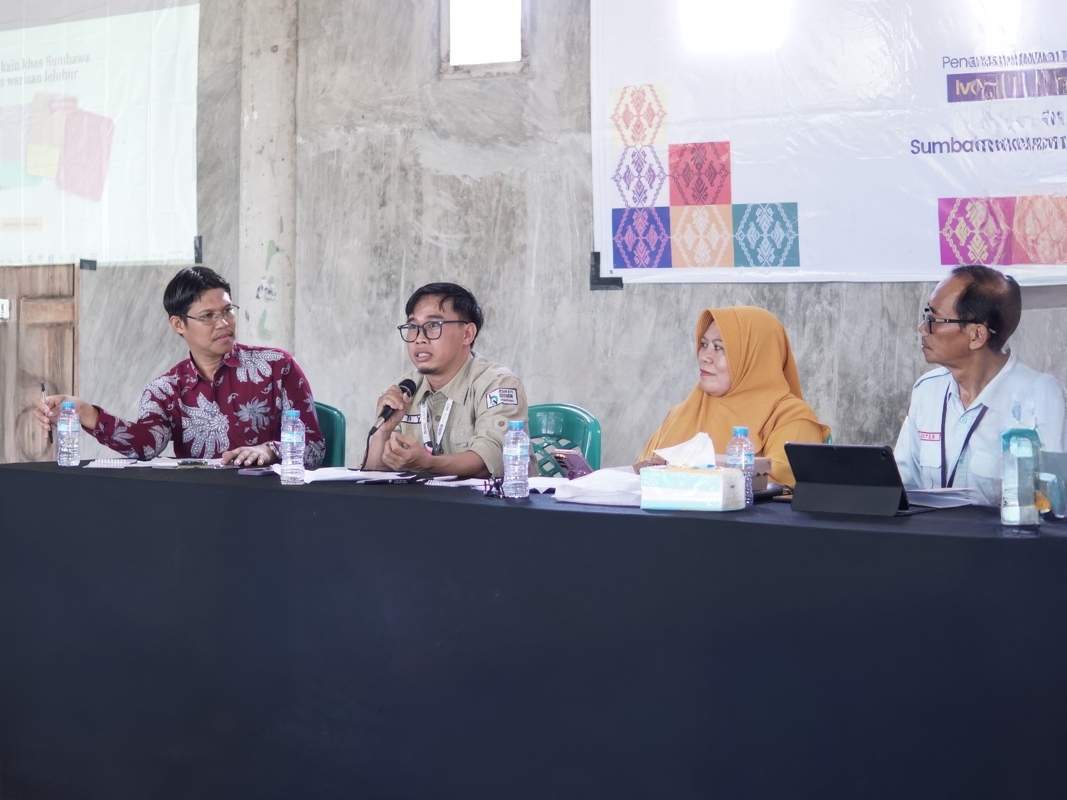 Dalam FGD ini, hadir berbagai pihak sebagai peserta diskusi diantaranya para penenun, unsur pemerintah, akademisi, kelompok pemuda, dan kelompok masyarakat lainnya, dengan menghadirkan para pembicara sebagai pemantik diskusi, antara lain: Tokoh Budaya, Ibu Siti Aminah, S.Pd., S.Psi., Bapak Sutan Syahril, S.Sos dari Dinas Pendidikan dan Kebudayaan Kabupaten Sumbawa, Ibu Sri Handayani, S.E dari Dinas Koperasi UMKM Perindustrian dan Perdagangan, serta Bapak Lalu Ahmad Taubih, M.Sc.,CHCM selaku Kepala Rumah BUMN Sumbawa.